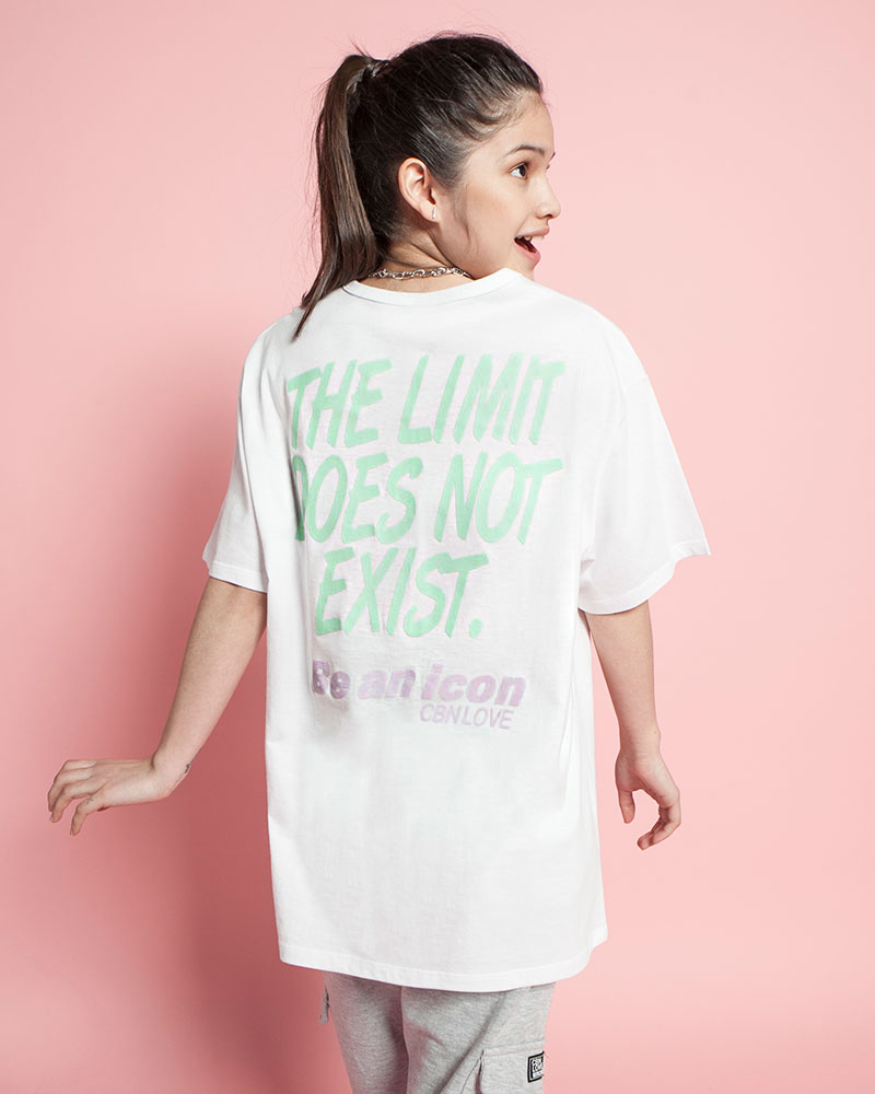 DescripciónRemera oversize jersey algodón, estampa "The Limit", en espalda, manga corta