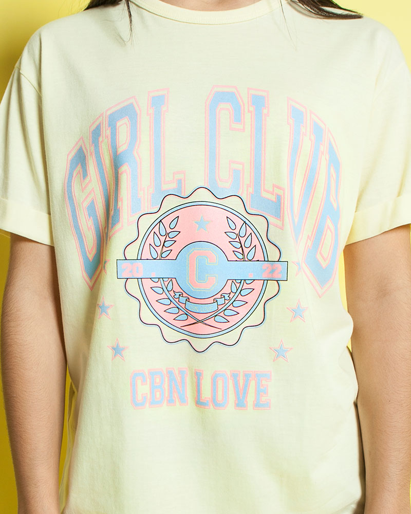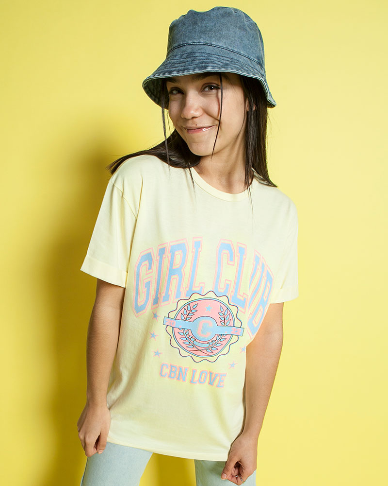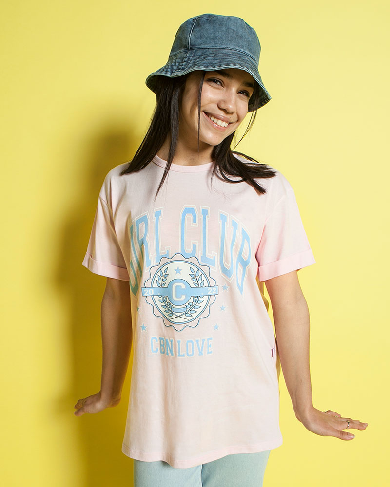 Remera oversize, jersey algodón, estampa "Girl Club", manga corta