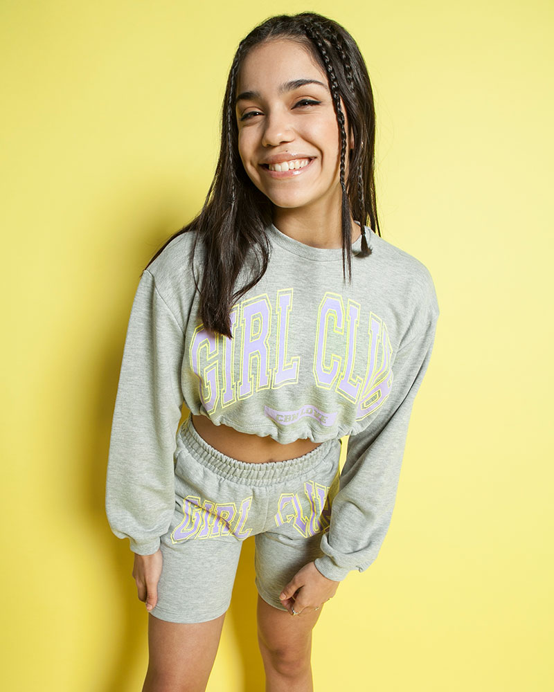 DescripciónBuzo rústico soft, con puños de morley, estampa "Girl Club", silueta holgada, largo a la cintura con lazo para fruncir