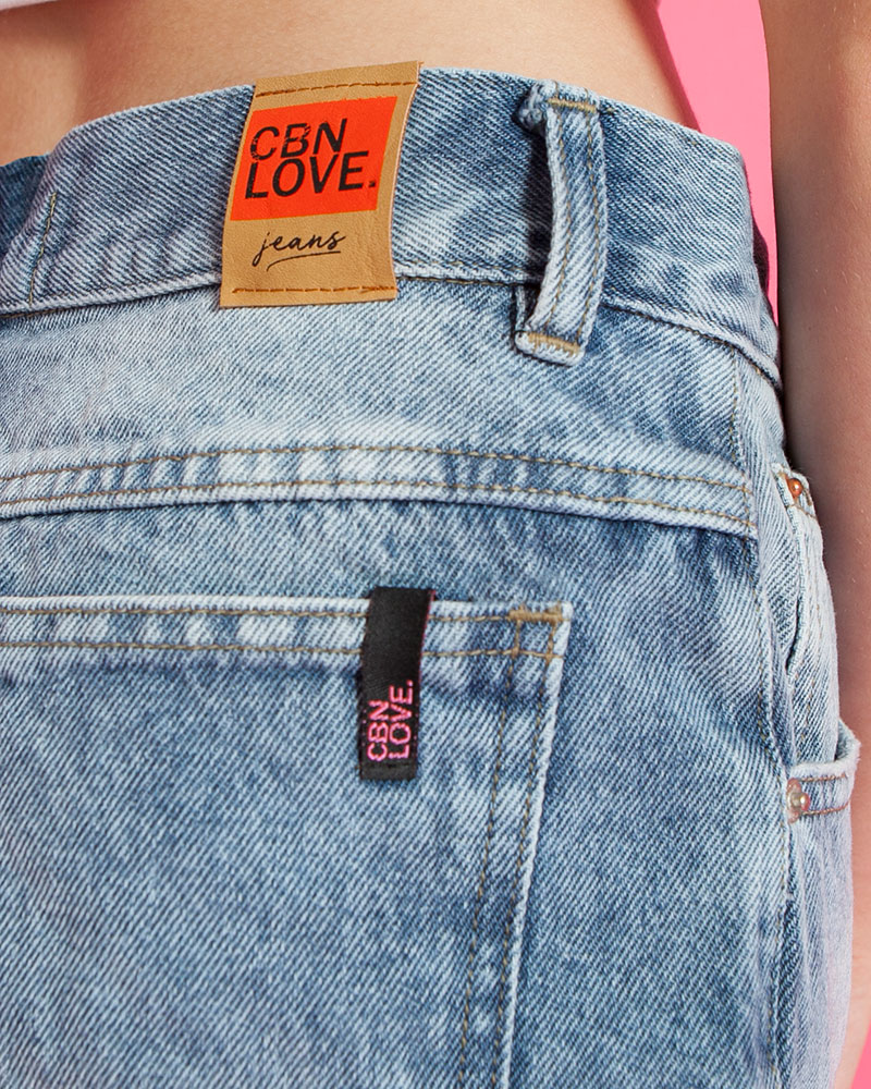 Falda jean, calce relax, con roturas y ruedo desflecado