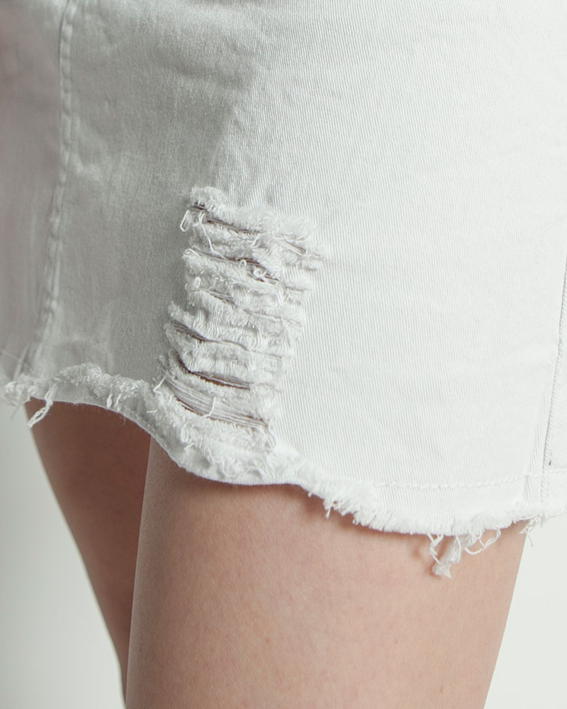 DescripciónFalda gabardina con elastano, tiro medio, con roturas y ruedo desflecado